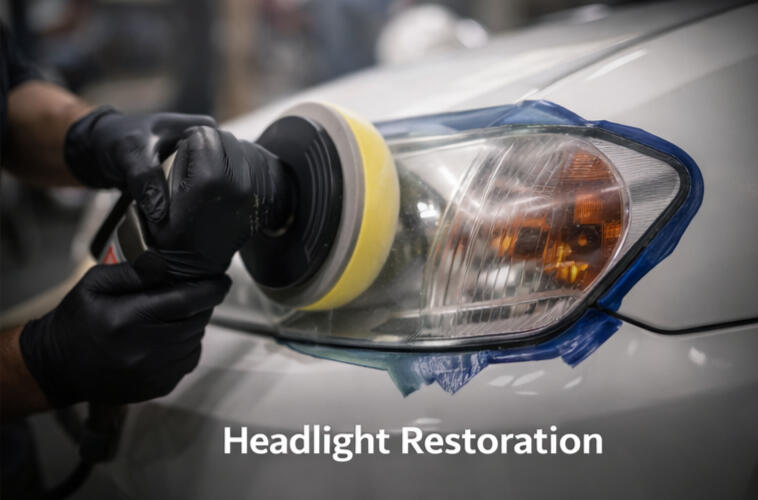 Headlight RestorationStarting from $100, our headlight restoration service removes oxidation, haze, and yellowing to restore clarity and improve nighttime visibility. Over time, headlights can become dull and cloudy due to UV exposure and environmental wear.We carefully sand and polish the headlights to remove damaged layers before applying a professional-grade 2K clear coat. This durable coating provides long-lasting protection against UV damage and helps keep your headlights clearer for much longer than basic polish-only restorations. The result is brighter, clearer headlights that improve both the appearance and safety of your vehicle
